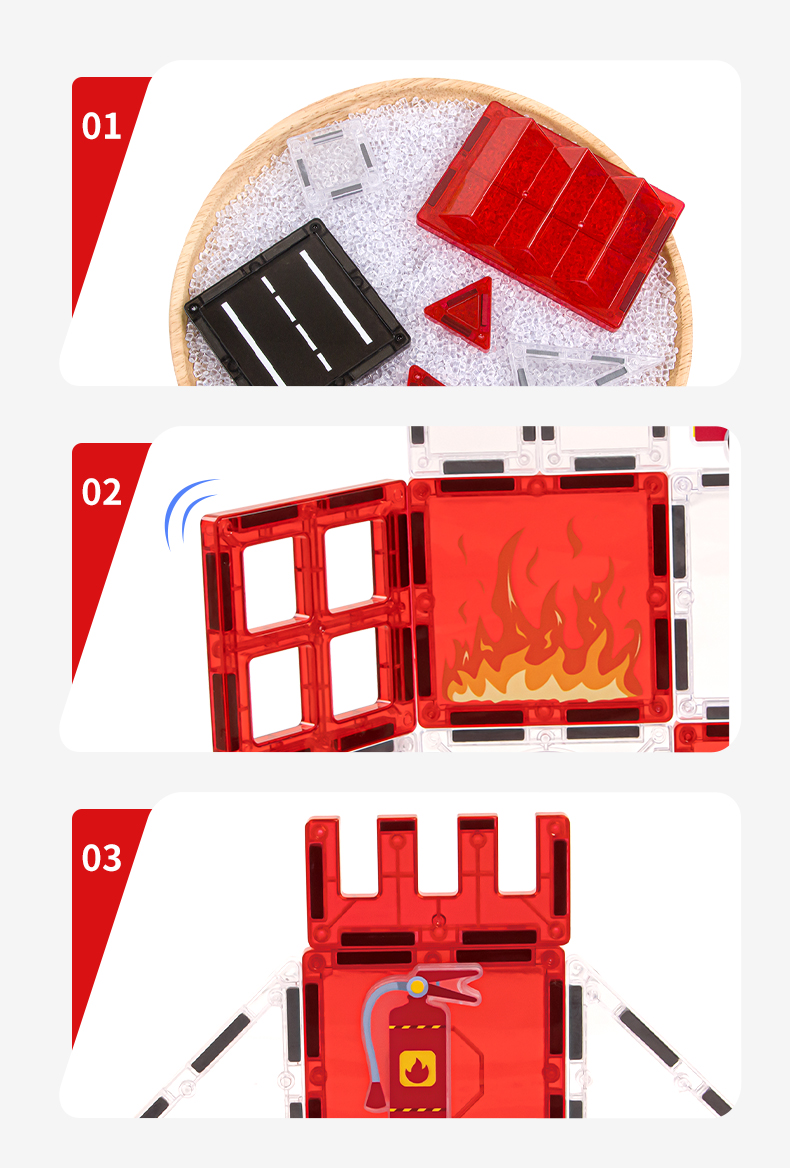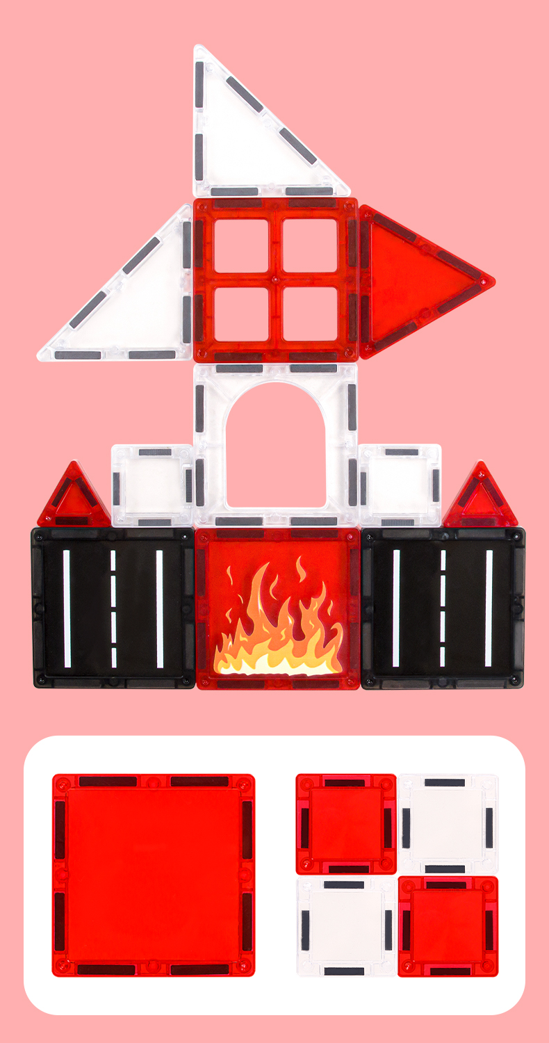 Dílky se snadno spojují pomocí silných magnetů , díky čemuž mohou děti vytvářet různé tvary, domečky, věže, hrady či originální umělecká díla. Magnetická stavebnice spojuje zábavu, kreativitu a estetiku, rozvíjí jemnou motoriku , představivost a smysl pro krásu.