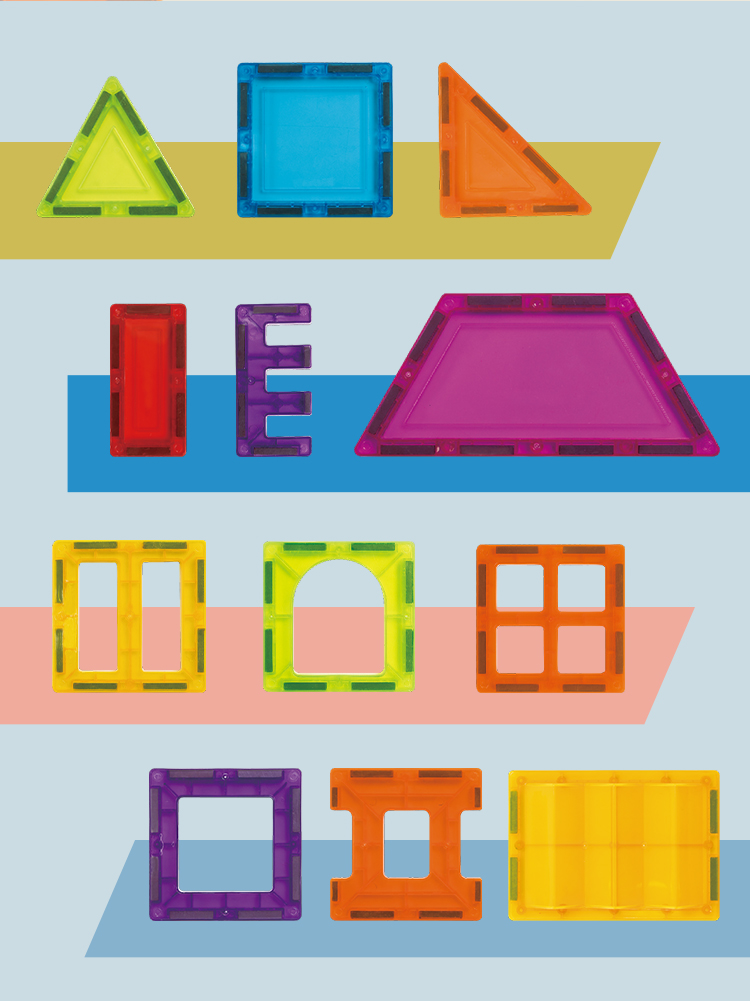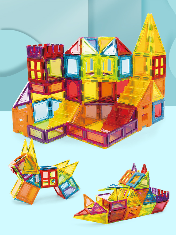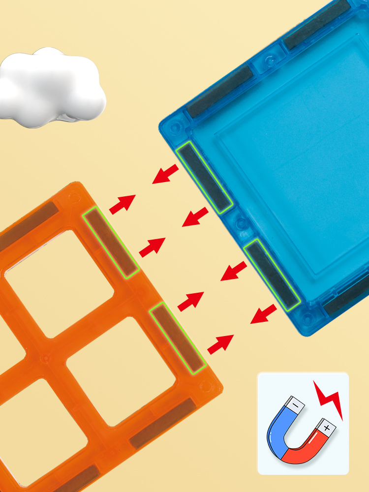 Dílky se snadno spojují pomocí silných magnetů , díky čemuž mohou děti vytvářet různé tvary, domečky, věže, hrady či originální umělecká díla. Magnetická stavebnice spojuje zábavu, kreativitu a estetiku, rozvíjí jemnou motoriku , představivost a smysl pro krásu.