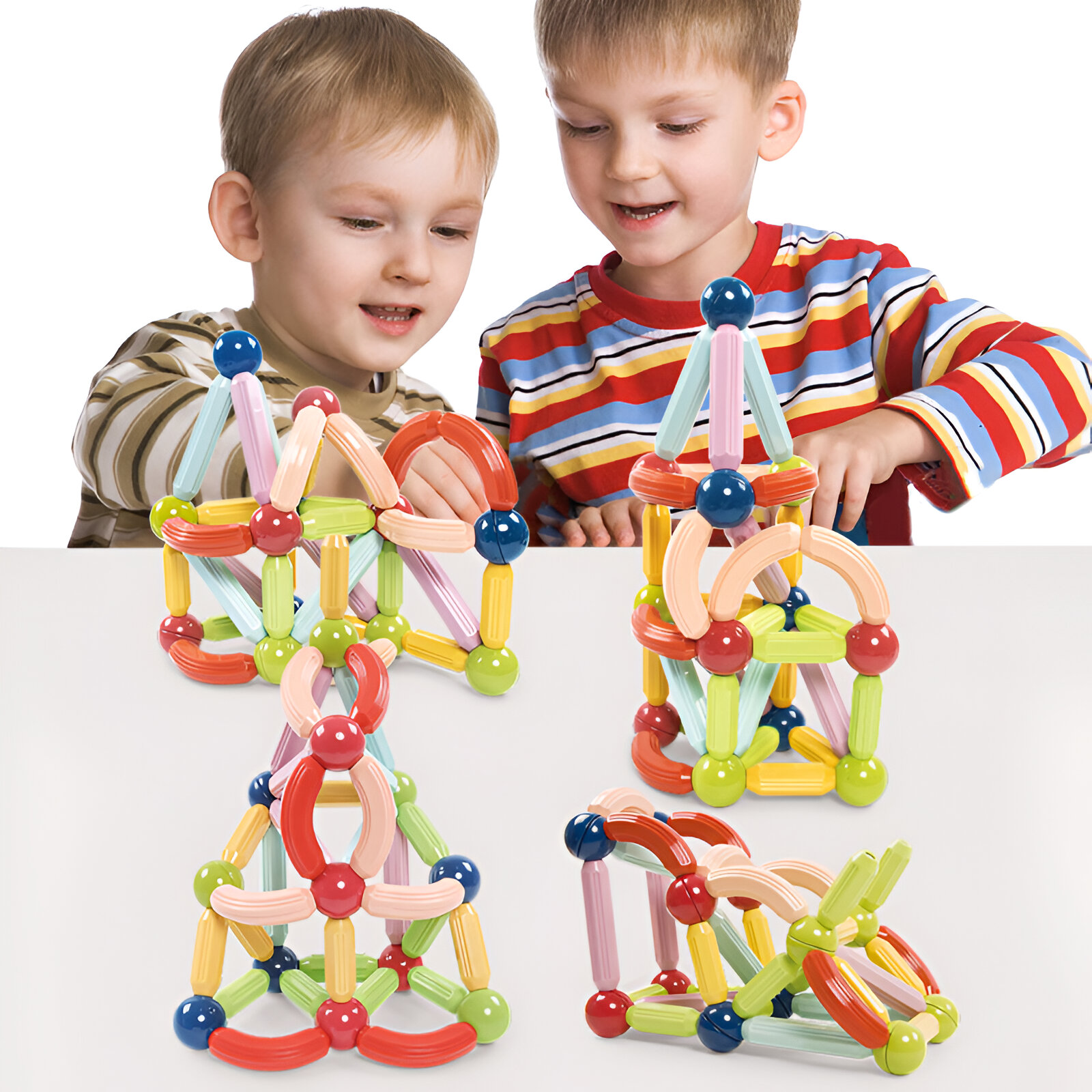 Dílky se snadno spojují pomocí silných magnetů , díky čemuž mohou děti vytvářet různé tvary, domečky, věže, hrady či originální umělecká díla. Magnetická stavebnice spojuje zábavu, kreativitu a estetiku, rozvíjí jemnou motoriku , představivost a smysl pro krásu.